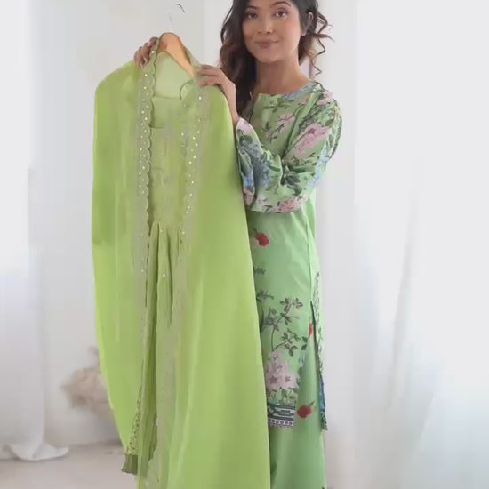 - Package Includes: 1 Gown + 1 Dupatta + 1 Pant